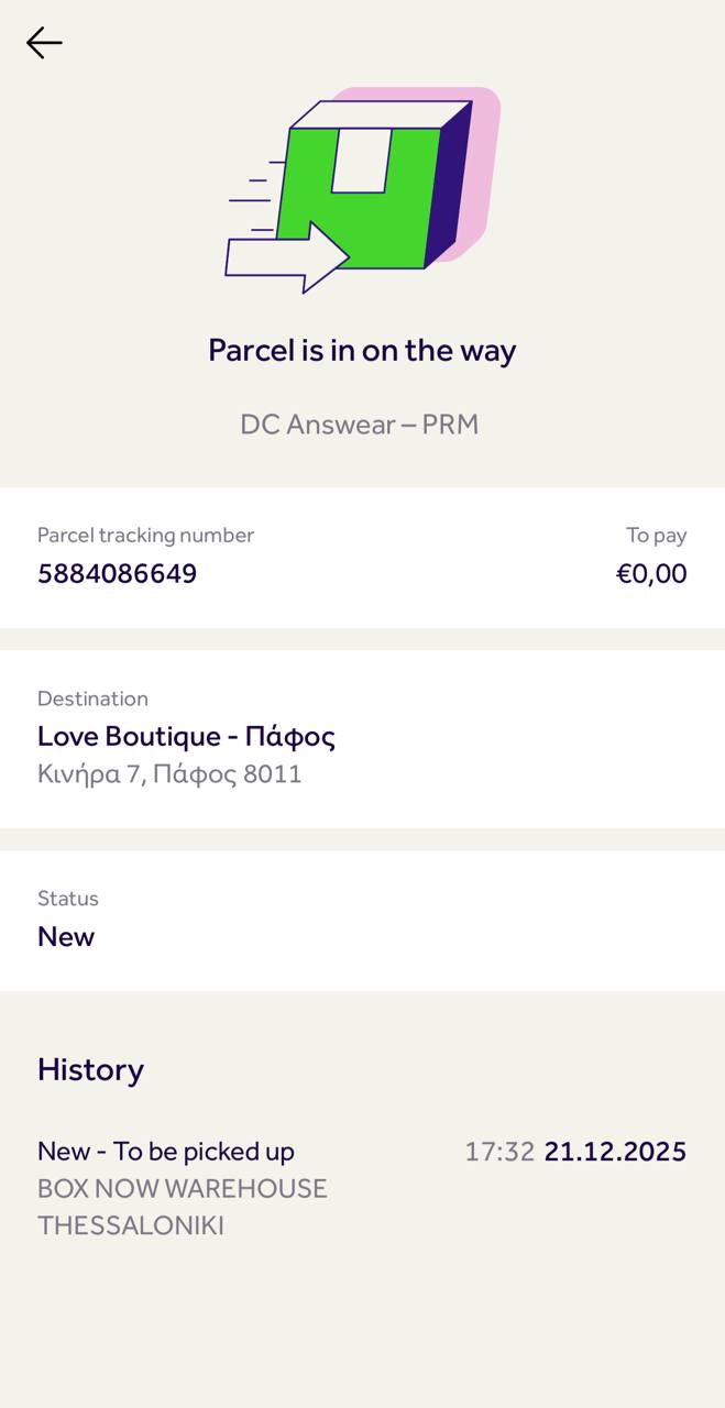 Подскажите, если кто-то пользуется доставкой BoxNow, посылка приехала или нет? Или где проверить можно ?