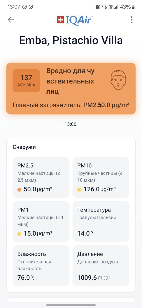 Вот это текущие данные прямо со станции. Онлайн показывает усреднённые данные за какой-то период времени. Был какой-то очень резкий всплеск до 800 с лишним, сейчас плавно опускается. Возможно какое-то локальное облако было, или ветер пыль поднял. Стройки ещё рядом с нами. Иногда станция сходит с ума если соседи камины топят или шашлыки жарят и дым попадает. Ну это реальные данные по реальному загрязнению в данной конкретной точке в данный конкретный момент.