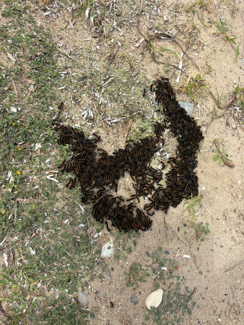 Если увидели таких гусениц, не трогайте, не подпускайте детей и держите собак на поводке. Это сезонное явление, обычно конец зимы – весна.