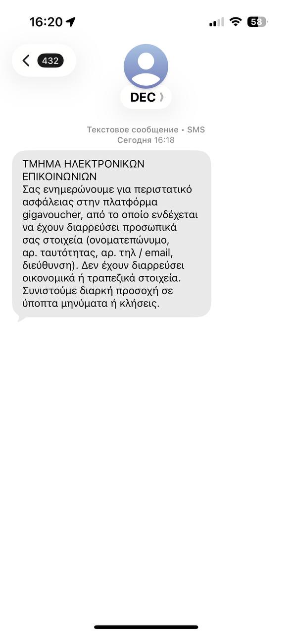 @nrubanovЭто департамент электронных коммуникаций предупреждает вас о том, что была утечка данных в платформе gigavoucher. Что могут вам писать разного рода мошенники и нехорошие люди.