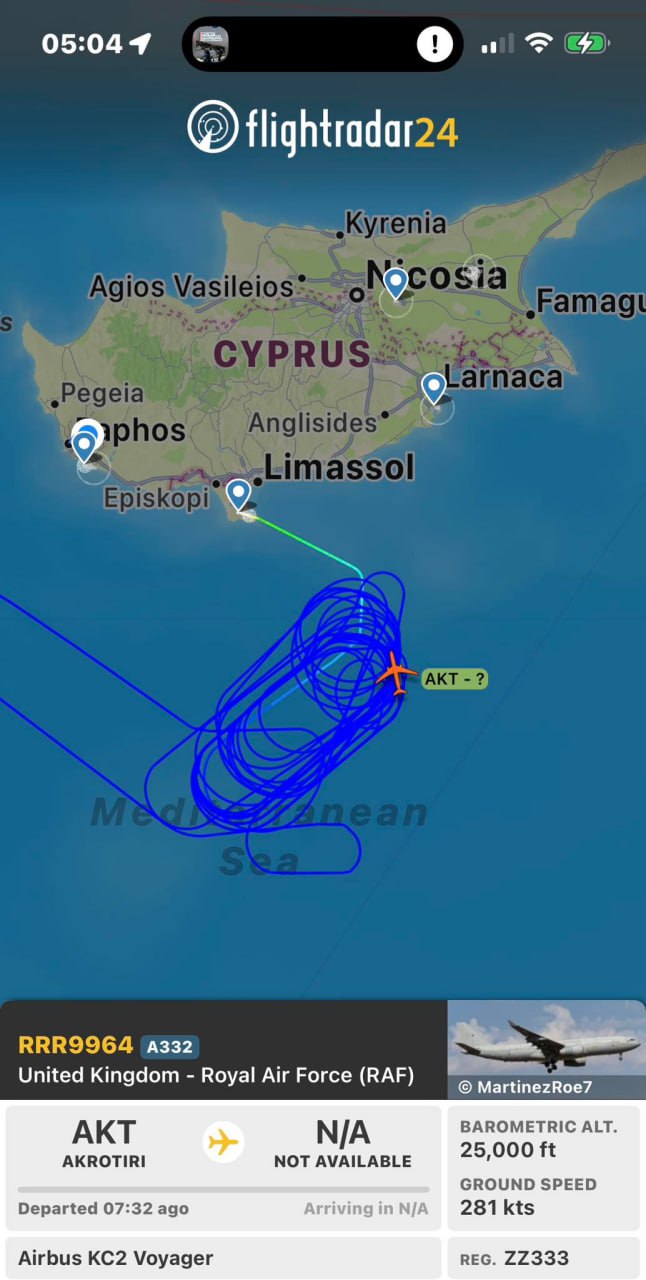 В англоязычной группе британцев на Кипре появился пост со скриншотом из Flightradar24. На нем видно самолет, который ночью долго кружил над морем к югу от острова. Автор поста написал, что это это самолет британских ВВС с базы RAF Akrotiri, и поблагодарил RAF за службу, добавив: «Благодаря им мы можем спать спокойно». Но в комментариях мнения резко разделились. Одни пользователи пишут, что британские военные обеспечивают безопасность. Другие, наоборот, считают, что присутствие британских баз делает Кипр потенциальной целью. Например, пользователь Михалис написал: «Нам не нужны ваши базы на нашем прекрасном острове и то, что вы подвергаете опасности кипрский народ. У нас есть союзники в ЕС, которые могут нас защитить. Не втягивайте нас в свою грязную политику. Вы уже слишком долго здесь. Уходите».