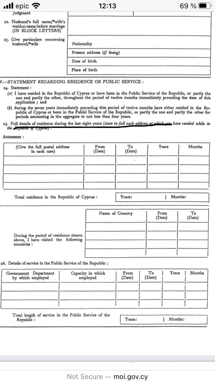 It can be submitted by foreign nationals, who have completed seven years of legal residence in the Republic prior to the date of application. In cases of aliens who are either parents or children of Cypriot citizens the time required is five years rather than seven.