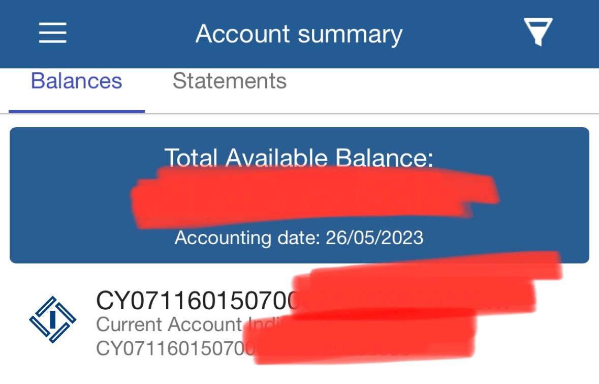 В требованиях миграции на Визитора указано: Detailed statement of bank account transactions in a financial institution in the Republic of Cyprus