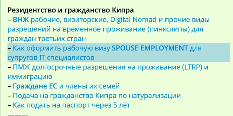 А, я по первой ссылке смотрела. Спасибо. А какие условия для такого вида внж, там срок брака должен быть больше н-лет? И муж должен работать по специальности в дипломе, нет?