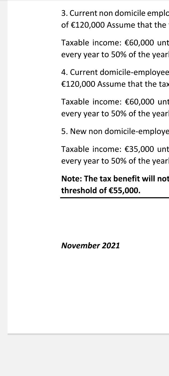 "with a salary exceeding the amount of €55K. The tax exemption period will be given for 10 years"
