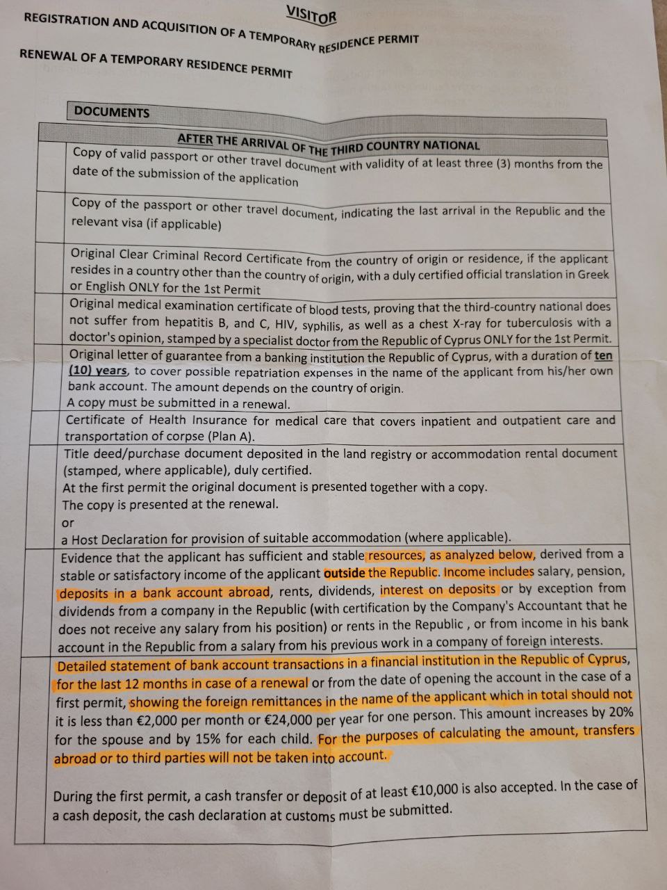 В требованиях к Visitor visa есть два отдельных пункта: первый - достаточные ресурсы вне Кипра и второй - достаточные переводы на Кипр. В части второго у меня вопросов нет, а вот в части первого вопрос: можно ли вместо доходов за рубежом показать достаточные остатки на счете за рубежом? Есть ли кто-то с успешным кейсом подачи?