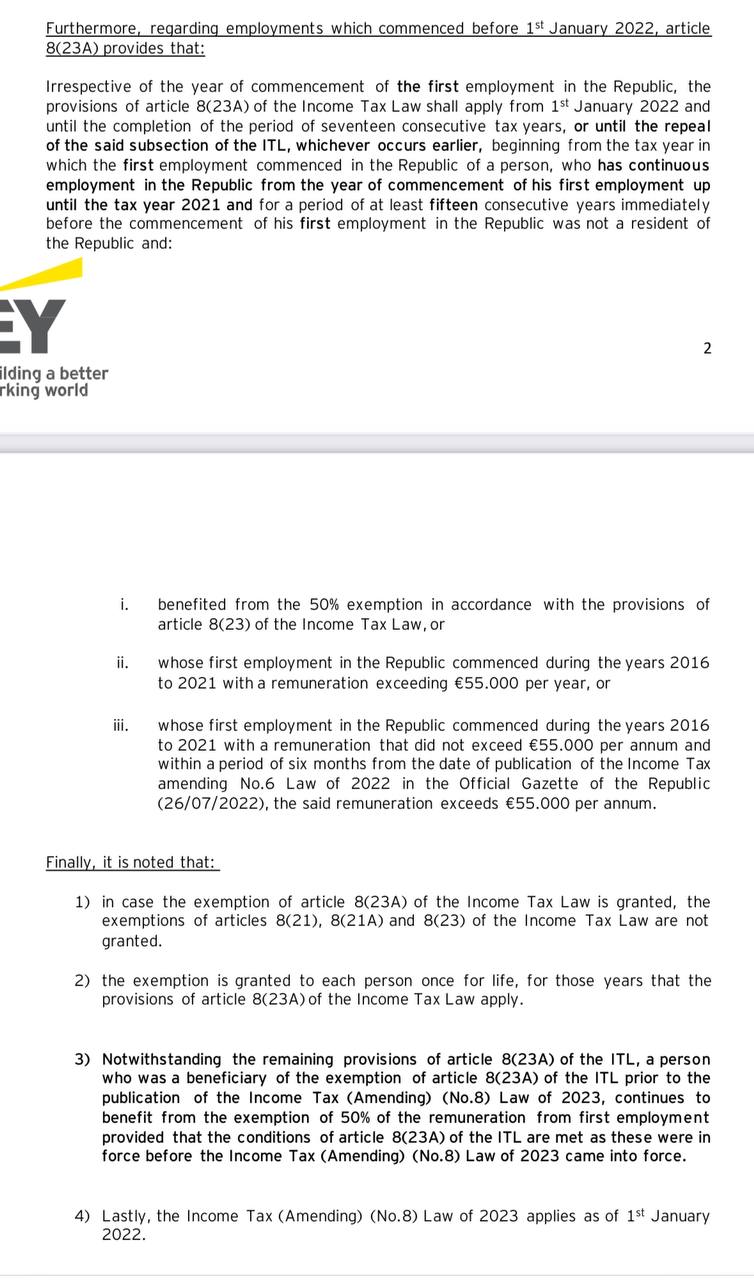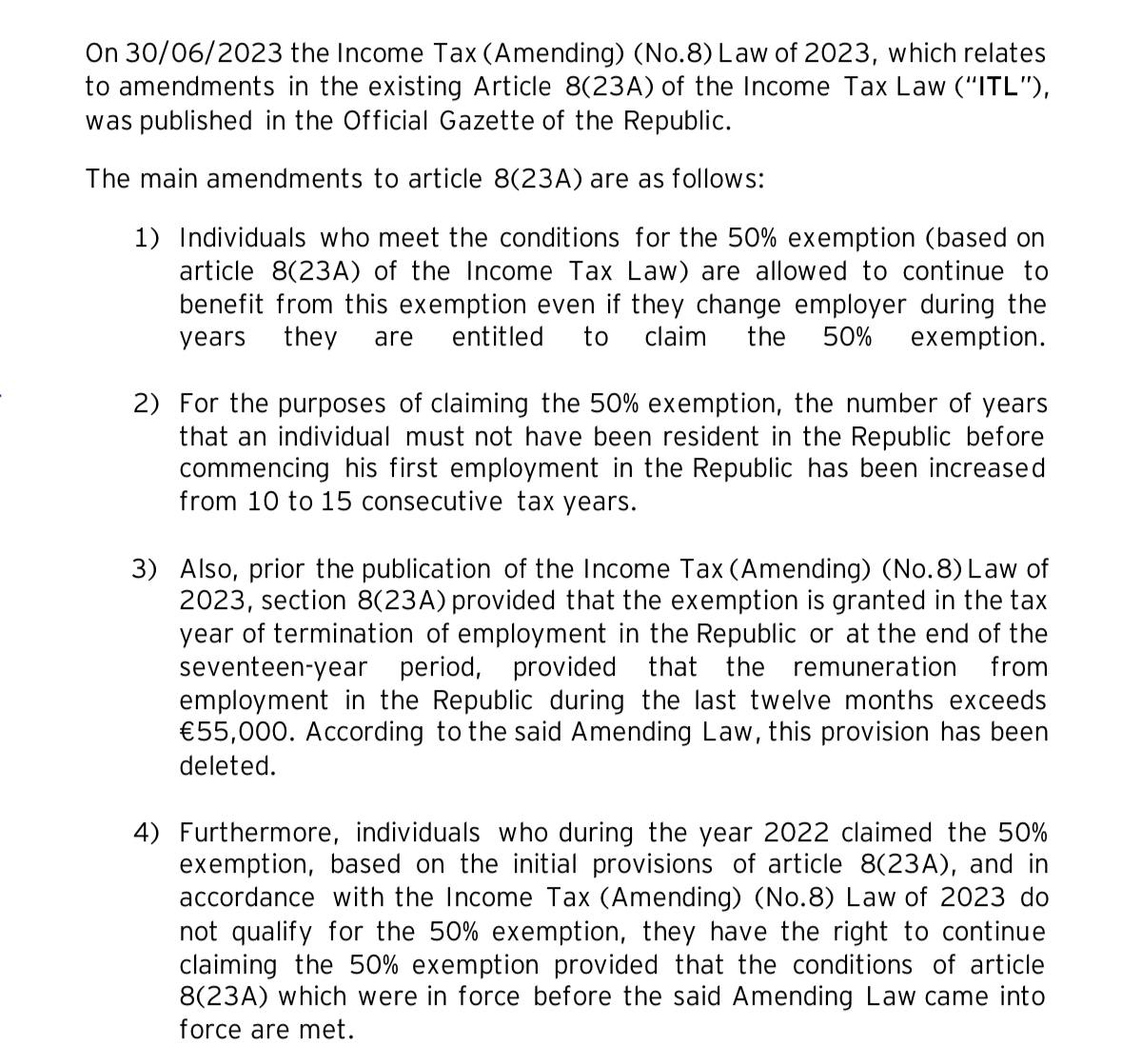 Формально должен попадать под него (c учетом всех последних поправок), но у меня такая ситуация, что первый раз работал на Кипре с 2016 по 2017, после чего уехал, до 2021 (то есть перестал быть резидентом), а в 2021 приехал и устроился работать уже торой раз. Может кто-нибудь сталкивался с подобным кейсом, факт такого уезда как-то влияет на возможность получения 50% скидки? Спасибо