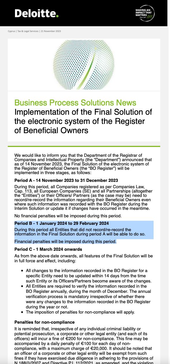 До 31/12 нужно было зарегистрировать БО в новом регистре на gov.cy.