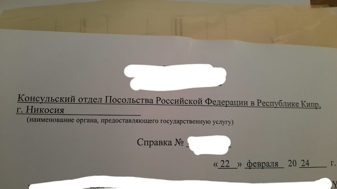 Это же не будет документ с «Северного Кипра», это будет документ от эрэф Посольства. ТРСК не признана, дипмиссии там нет. А граждане есть. Поэтому Посольство осуществляет выездной прием