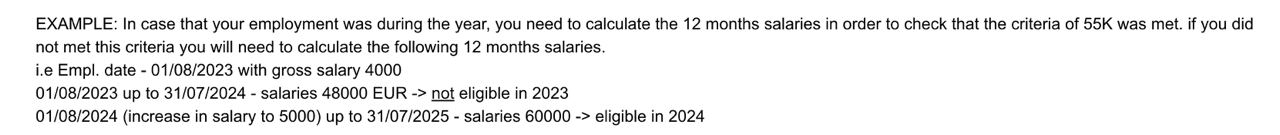 Судя по скриншоту с примером, надо указывать апроксимированную сумму как гросс зарплата за год, и если она выше 55к, то попадаете под вычет