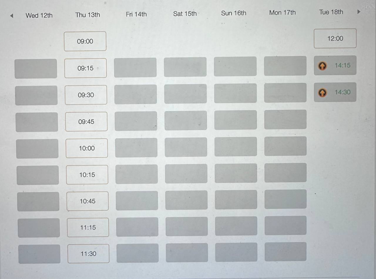 Надо бронировать два отдельных слота и приходить по времени к тому, который первый - они склеют их на месте