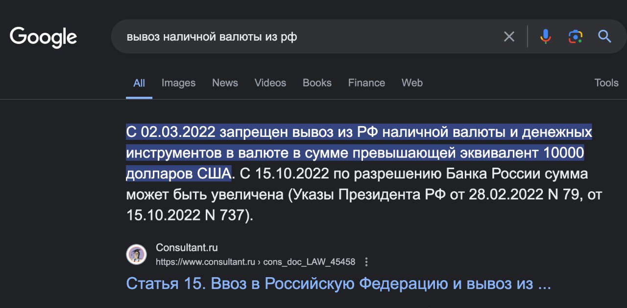 Спасибо Никита. Да, вопрос подразумевал ссылку на нормативные акты. До последнего времени я не видела информации что нельзя вывозить из РФ больше 10000. Меня удивил пост. Это важно. Есть ли пруф?