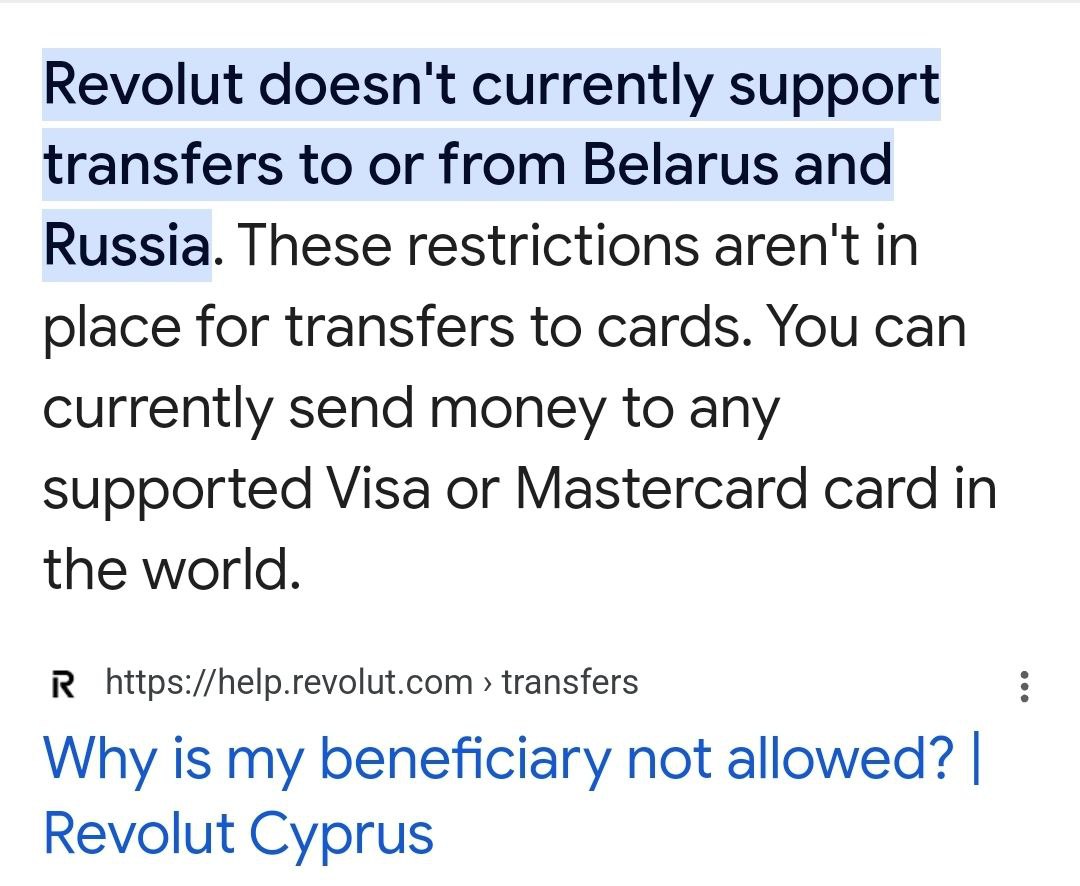 @EvgenyMosна самом деле, Револют может принять/отправить любые платежи, если их пропускает банк-корреспондент. Когда разбирался с исходящим платежом, который не дошел до получателя, Револют ответил: