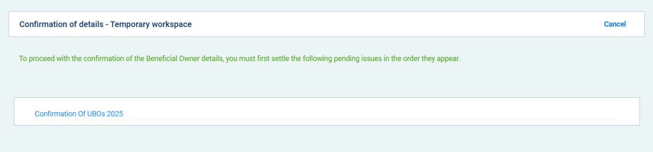 Вопрос по annual update of UBO Register, делал по шагам, изначально в Ενέργειες (Actions) не было той кнопки, почему? И должна ли дата UBO confirmation сразу обновиться?