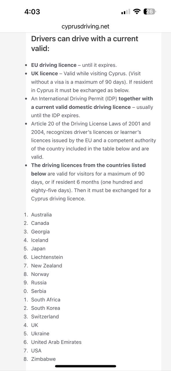 Кипр член женевской конвенции 1949 года (где нужны международные права) .. Но не венской конвенции 1968 года. По последней можно ездить по национальным правам (розовые которые).