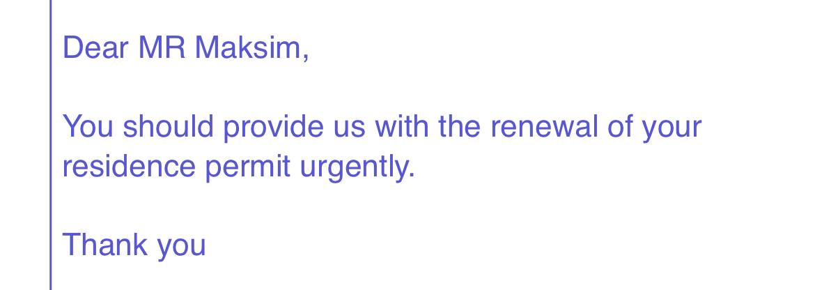 Я конечно ответил Хелленику что заявку на мой пермит я только что подал и никакого продления не может быть потому что это мой первый пермит)