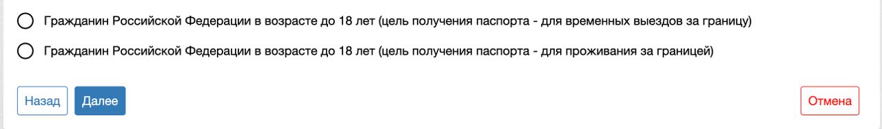 Подскажите пожалуйста, кто в курсе, какую опцию нужно выбрать здесь при заполнении анкеты на получение загранпаспорта в Посольстве РФ новорожденному ребенку?