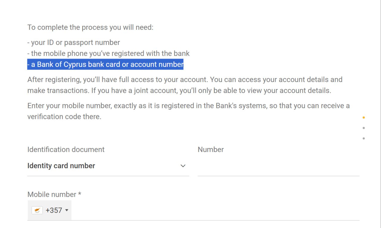 Подскажите пожалуйста, кто-нибудь подавался на банковскую карту онлайн в bank of cyprus? Пришла в офис, мне говорят, что только онлайн. Захожу на сайт, а тут для регистрации нужна банковская карта или аккаунт.