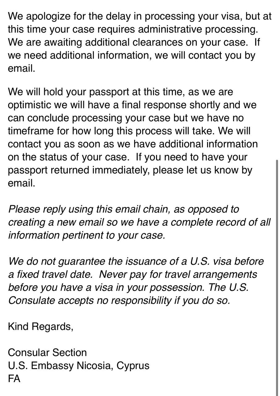 Сегодня получили один паспорт с визой, а второй паспорт не получили. Пришло позже такое письмо… Такое бывает, что после одобрения визы отправляют на дополнительную проверку? Почему-то думали, что на дополнительную поверку могут отправить во время интервью 😕