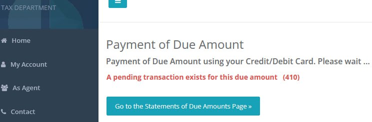 привет, при попытке заплатить налоги на taxportal.mof.gov.cy по готовой платежке вылетает такая ошибка "A pending transaction exists for this due amount (410)", сталкивались? Ждать?