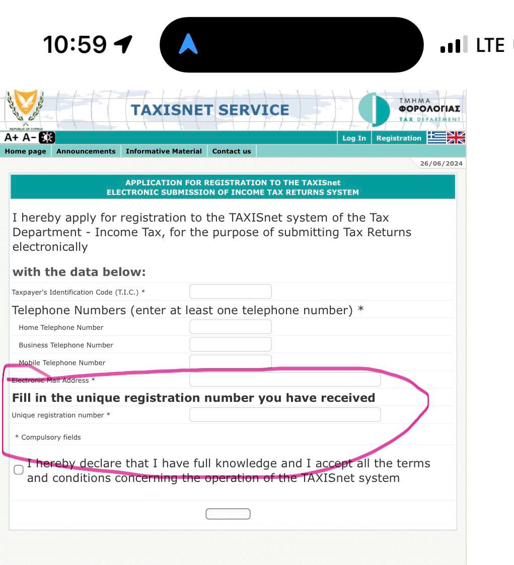 Всем привет! Регистрируюсь в taxisnet. TIN есть, его ввожу выше. А что это за unique registration number?