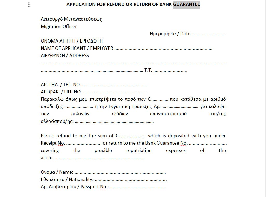 Здравствуйте, я уехал из Кипра и собираюсь подать на возврат банковской гарантии.