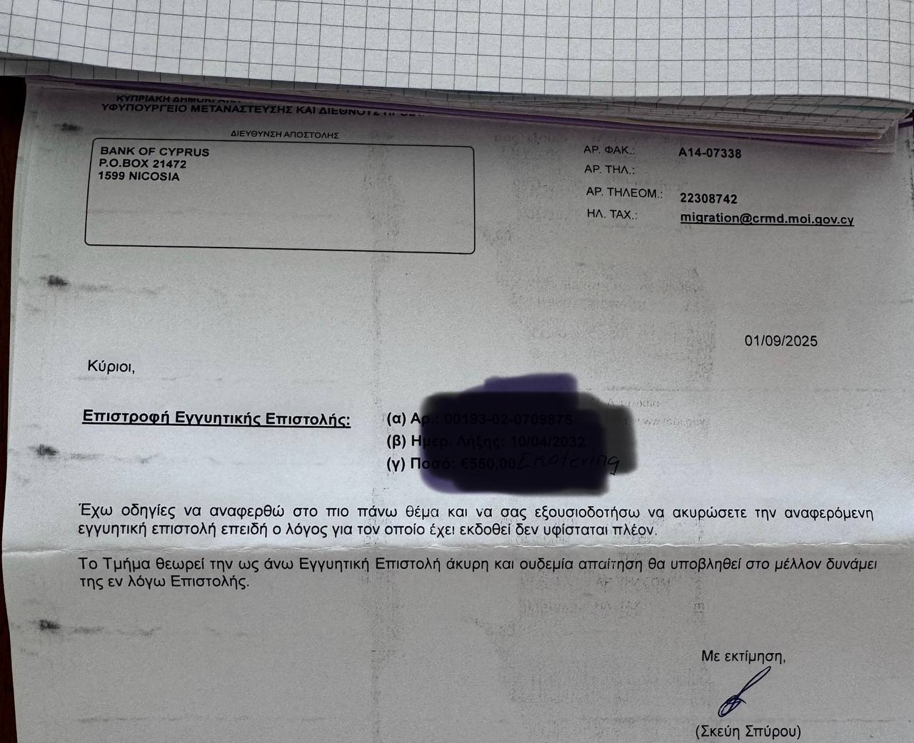 Добрый день. Подскажите, пожалуйста, получила из иммигрейшн письмо, в котором пишут, что «просят аннулировать гарантийное письмо и что претензии по указанному письму приниматься не будут» , стоит сумма 550евро. Что это за «письмо счастья» ?)