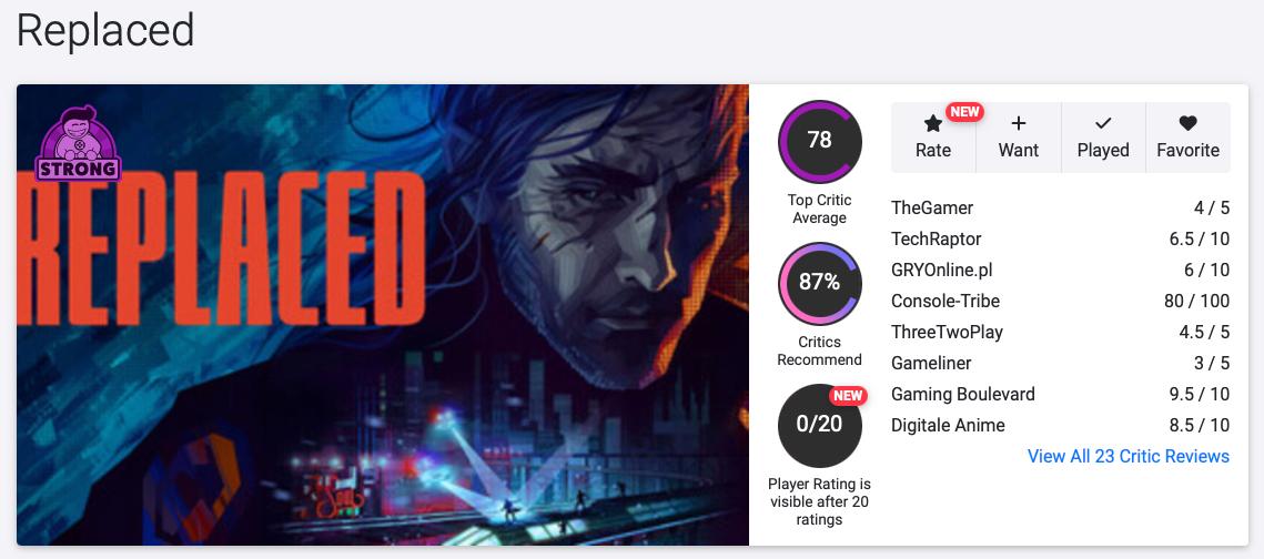 Некоторые издания ставят Replaced в топ игр года, подчёркивая силу атмосферы и боёв, тогда как другие пишут, что проект «на грани», но не доходит до настоящего шедевра из‑за технических и темповых проблем.