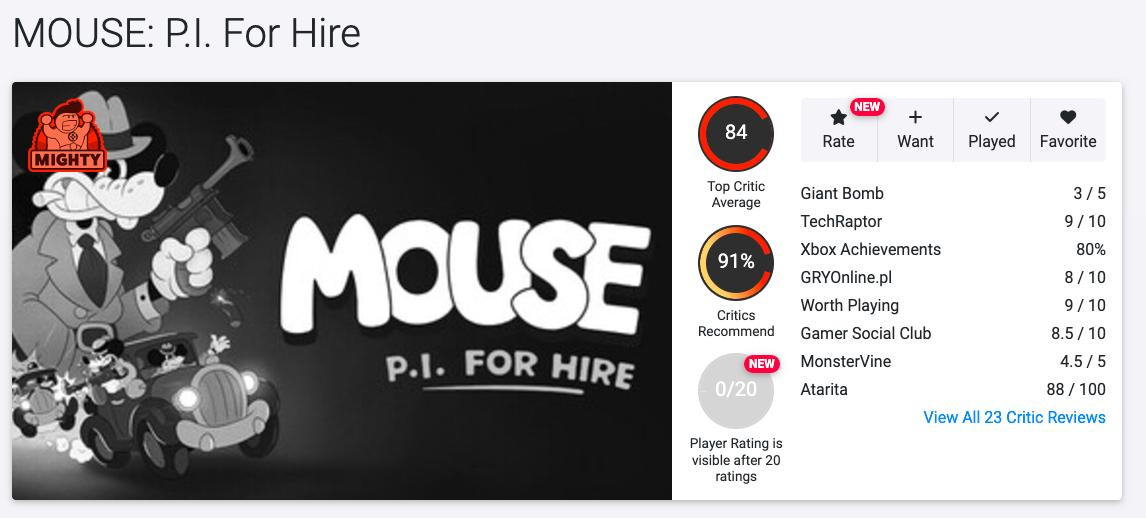 @liv_masterА если кто-то хотел не Pixel Art Replaced, то ещё появились оценки MOUSE: P.I. For Hire