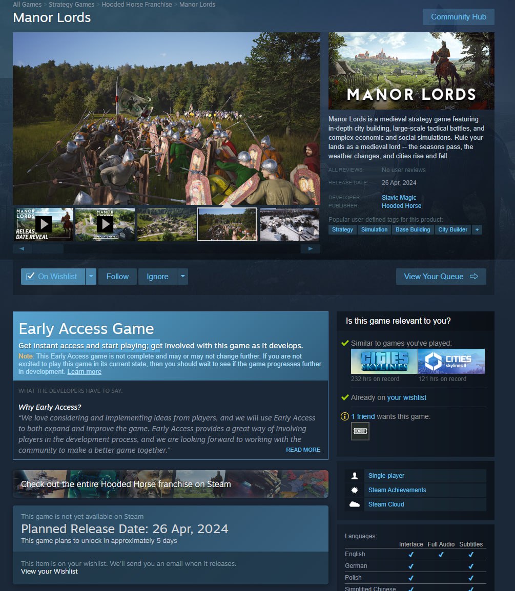 А че manor lords можно уже играть? Релиз 26го и вроде early access есть и я тупил все это время
