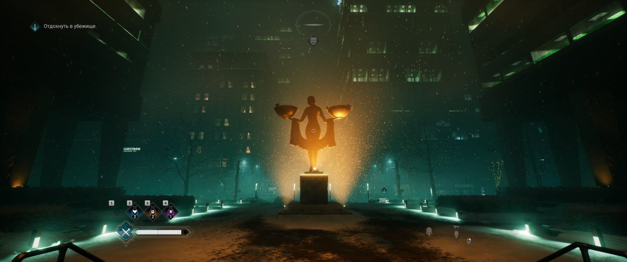 И вот с ними игра кое как справляется. Перед нами, насколько я могу судить по первым часам, довольно камерное приключение в крайне компактном рождественском Сиэтле. Назвать это открытым миром у меня язык пока не поворачивается, по ощущениям это больше похоже на большой городской уровень из Dishonored, на который и в целом игра отдаленно похожа. Вид от первого лица, диалоги с отдельными персонажами, лазанья и карабканья по окрестным зданиям и вентиляционным шахтам. Но не подумайте, что это Immersive Sim, отнюдь, всё сильно проще. Другим важным отличием от Dishonored будет боевая система, завязанная на ближнем бое и применении способностей персонажа, но только работает она крайне криво. Со способностями всё нормально, но вот именно драки выглядят подозрительно похоже на то, как это было 21 год назад, даже анимации как будто постарались сохранить, то есть очень плохо, и удовольствия от таких сражений на первых парах, как минимум, нет совсем. Надеюсь, что с появлением большего числа способностей и по мере прокачки, не очень глубокой, станет лучше, но до этого ещё надо добраться.