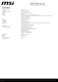 Полная спецификация по ссылке на сайте MSI (необходимо выбрать модель GE78HX 13VH-283RU) или в приложенном .pdf (именно такой конфиг).