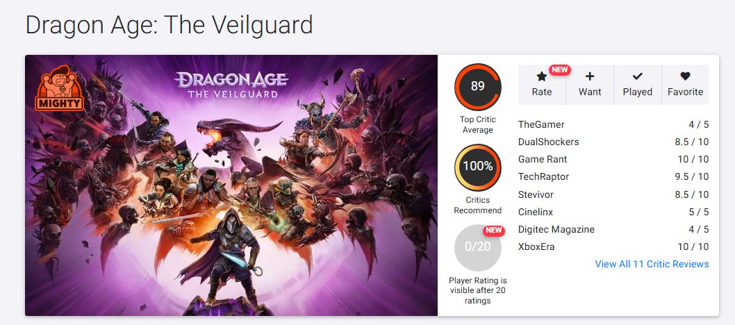 @liv_masterПервые оценки Dragon Age: The Veilguard — 89 баллов.