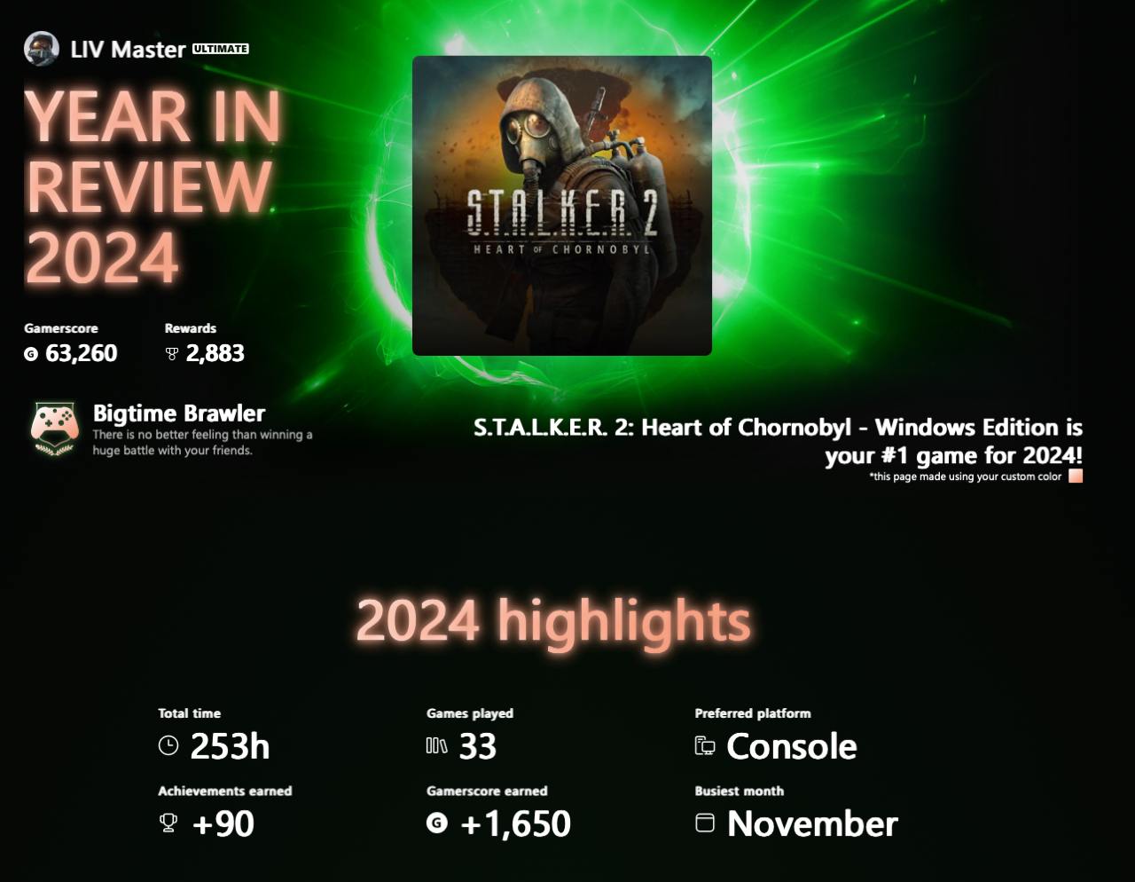 @liv_masterЧто-то со счетчиком часов пошло не так, тут должна быть Outlaws, но так тоже хорошо) https://www.xbox.com/year-in-review