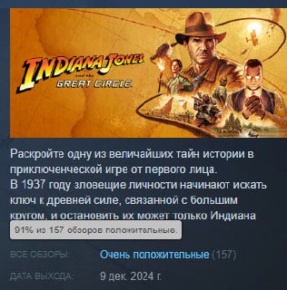 @liv_master91% — у «Индианы Джонса» сформировался стартовый «очень положительный» рейтинг в Steam.