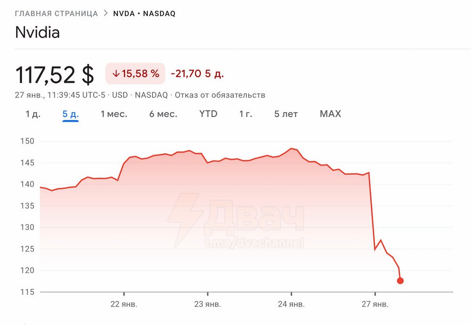 ➖В Кремниевой долине началась паника: инвесторы сворачивают финансирование ИИ-проектов и распродают акции производителей чипов, а NVIDIA уже предрекают мрачное будущее.