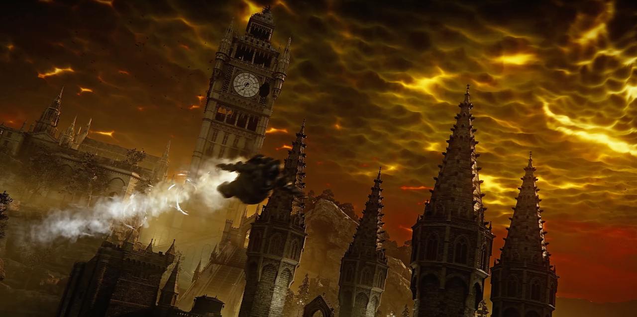 Мужик в броне на джетпаке. Готичненько всё вокруг