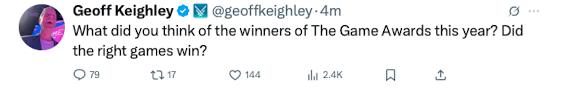 Мы решили, что не будем вообще смотреть в записи TGA, лучше быстренько несколько трейлеров пощелкаем и новую серию Pluribus глянем, там интереснее))