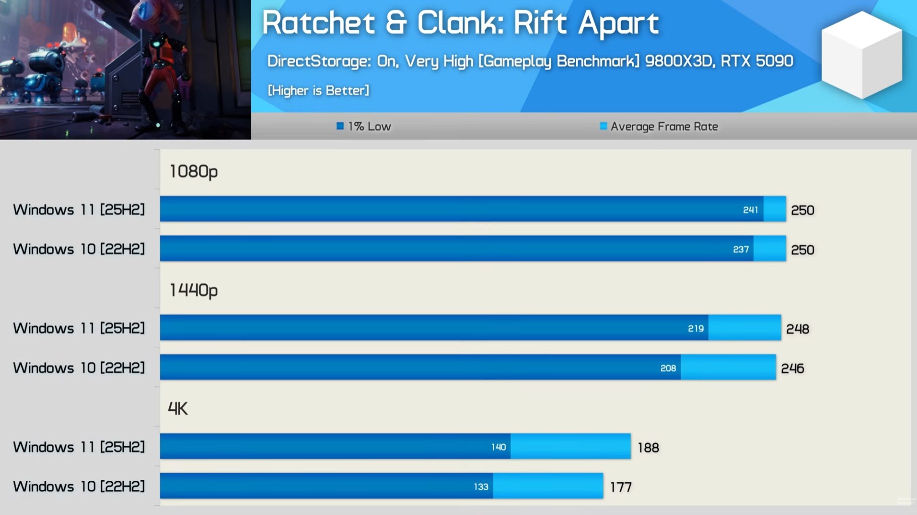 @liv_masterПроизводительность в играх на Windows 11 до 5% лучше, чем на Windows 10, согласно тестам Hardware Unboxed.