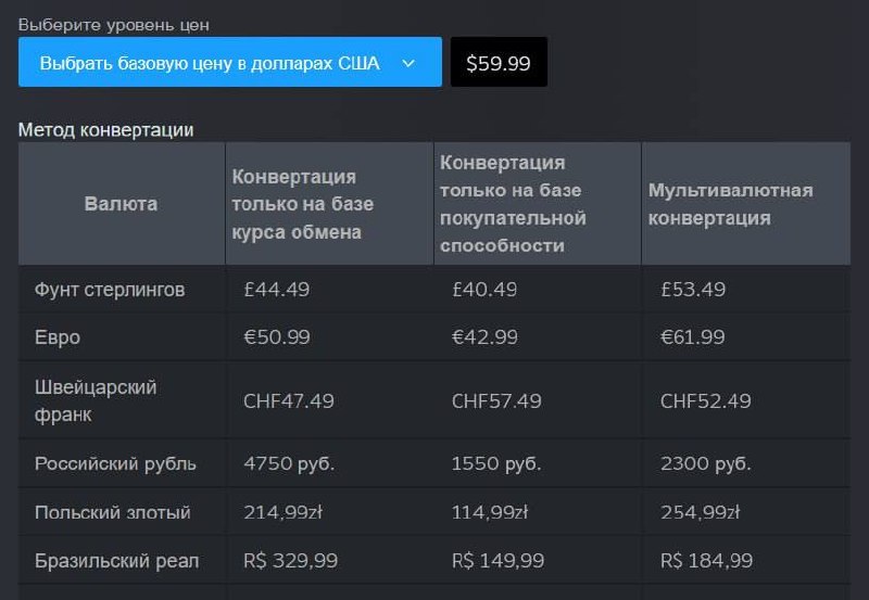 @MelatoriИгры в Steam станут дешевле: Гейб представил абсолютно новую систему рекомендаций региональных цен. Она основана не на простой конвертации по курсу, а на покупательской способности в регионе. К примеру, игра за $60 по этой системе должна стоить всего 1550₽ в России. @ecotopor