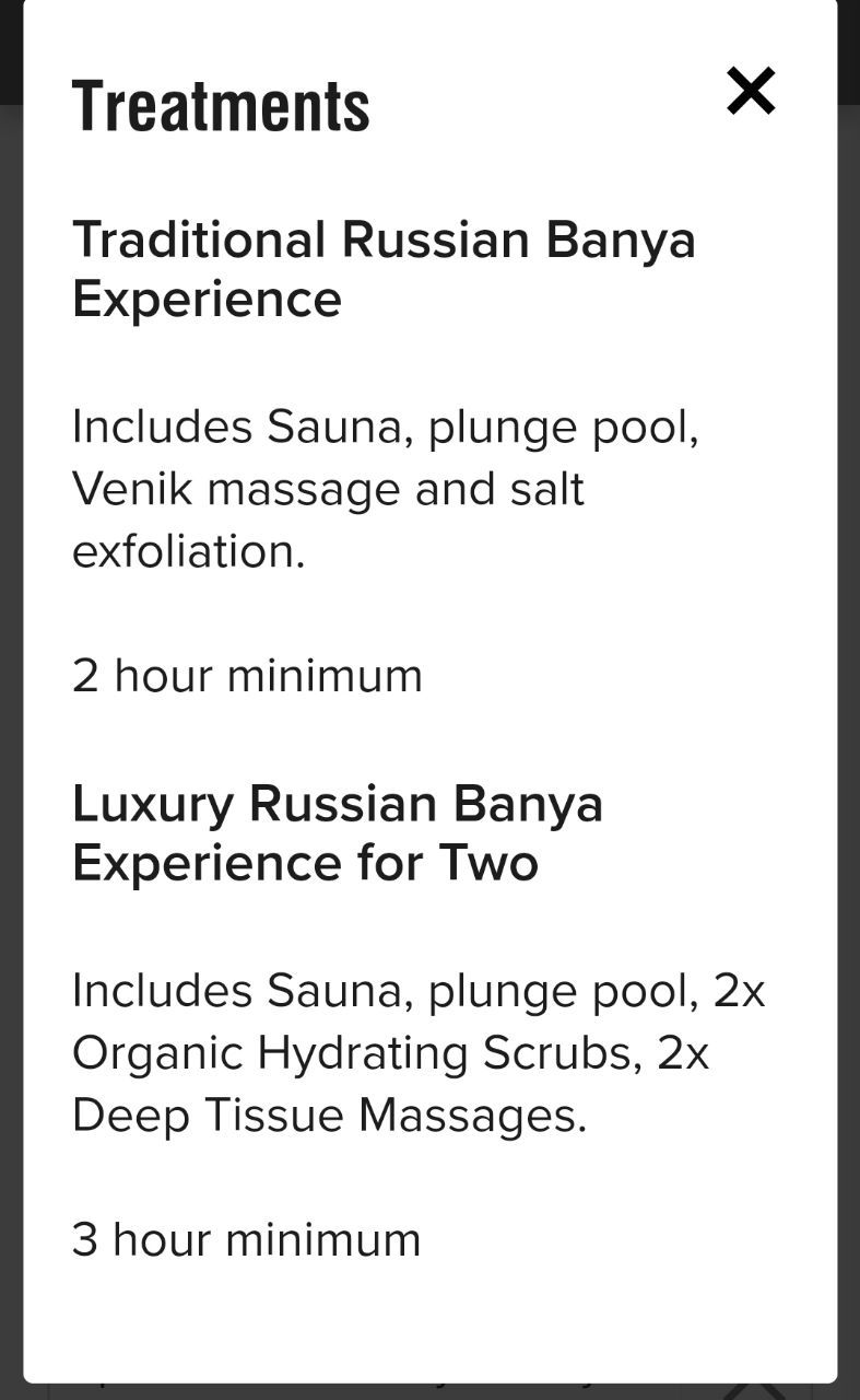 Есть программа на 2х человек на 3 часа с банщиком за 420 евро (на двоих)