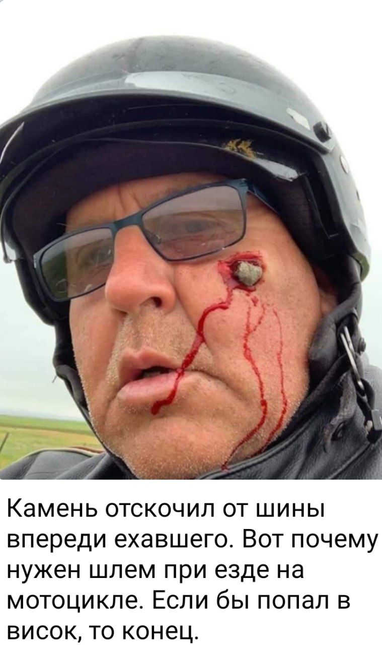 Когда-то в детстве помню случай. Хоронили байкера с Явы 350. Ему вечером на закате на хорошей скорости ласточка в глаз попала. Глаз аж взорвался. Глаз может быть и не спасли бы, но с этой скоростью он на дороге естественно не удержался и от шока в дерево уехал и все.