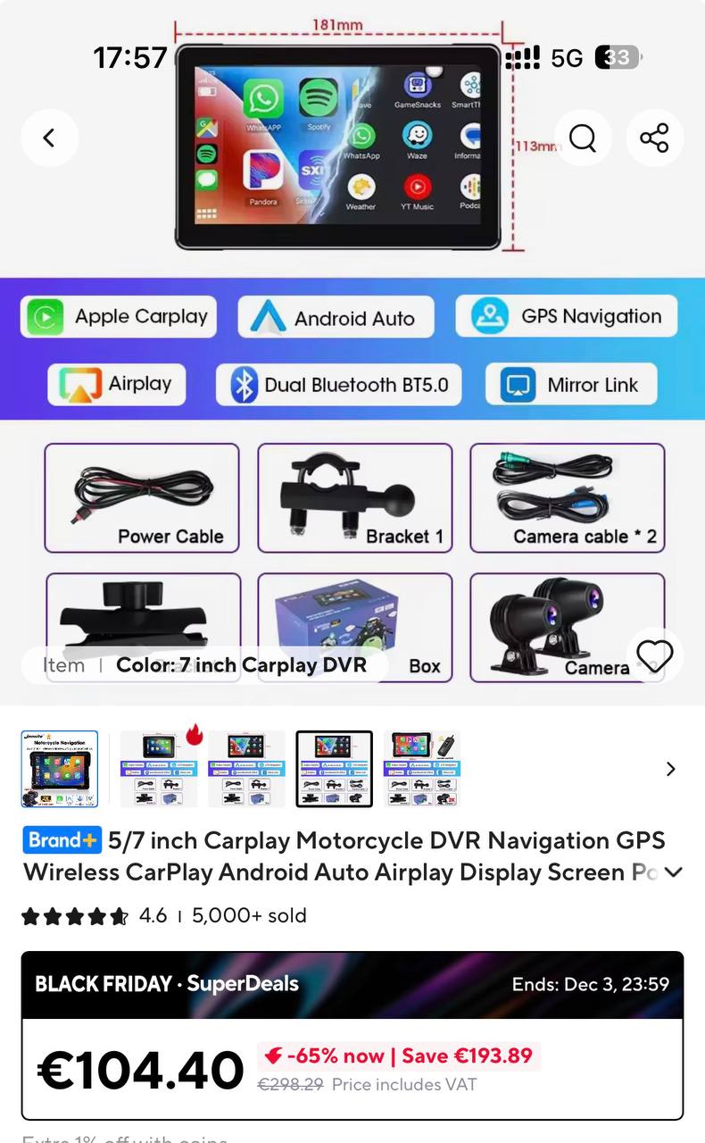 Продаю абсолютно новый CarPlay/Android auto для байка со встроеным регистратором и 2 камерами. Мне не подошел потому что для моего мота слишком большой.
