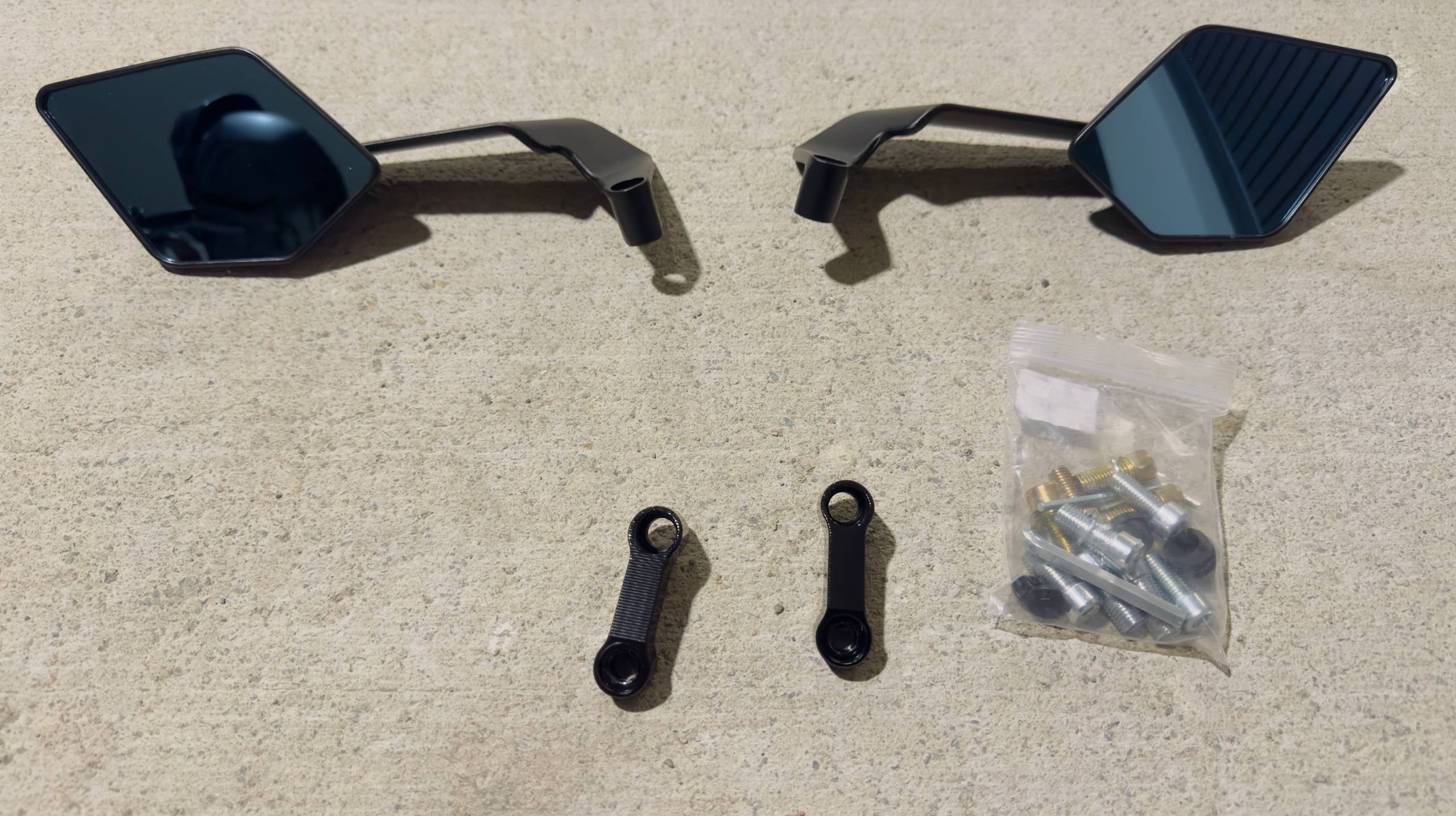 Китай-зеркала с выносами и всяким для установки. Зеркала не выглядят как полное говно, но мне эта машинерия не зашла. За 30 евросов отдам, или будет у меня валяться