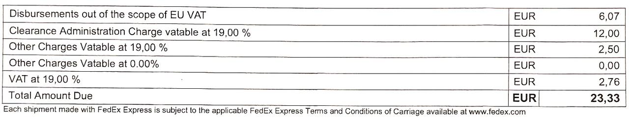@alex_smalletFedEx прислал такой инвойс. Изначальная стоимость товара была 37.49 долларов или примерно 32 евро. Это не считая стоимости пересылки