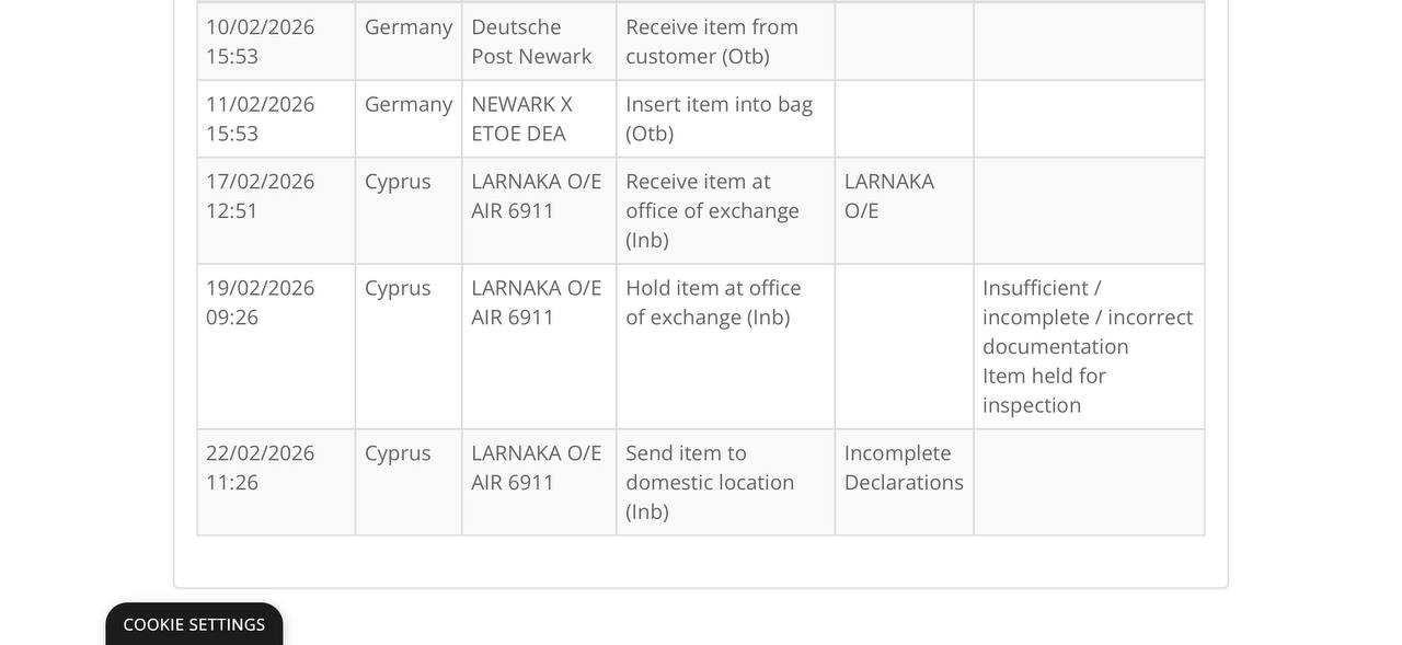 Пока едет по Китаю, на сайте Почты Кипра не отслеживается.