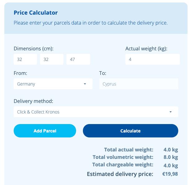 Калькулятор на сайте пишет, что стоимость доставки будет 20 евро, как за вес 4кг.