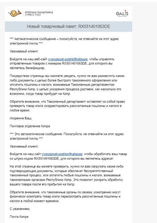 Есть у кого удачный опыт с таможней Кипра через thalisupp?