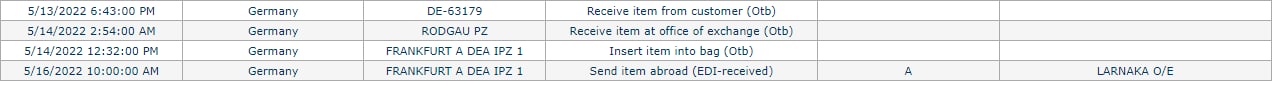 У меня уже больше 10и дней отправление из CU висит между Франкфуртом и Ларнакой. Я так понял из прошлых обсуждений, что может и еще неделю провисеть, и это норма, но немного начинает беспокоить. Есть ли возможность аккуратно потыкать куда-то, чтобы узнать состояние?