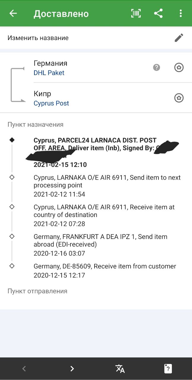 DHL четвертый день не может отправить посылку из промежуточного Лейпцига на Кипр
